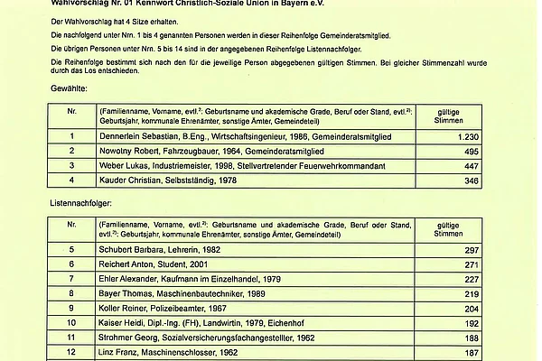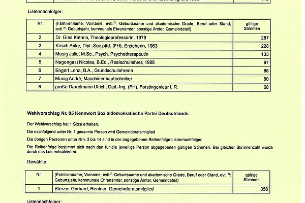 Bekanntmachung des abschließenden Ergebnisses der Wahl des Gemeinderates