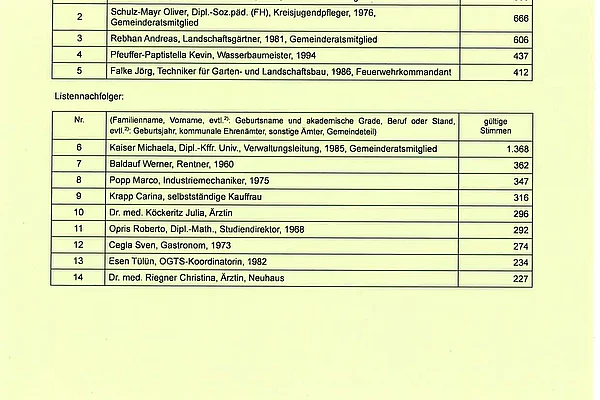 Bekanntmachung der zugelassenen Wahlvorschläge für die Gemeinderatswahl