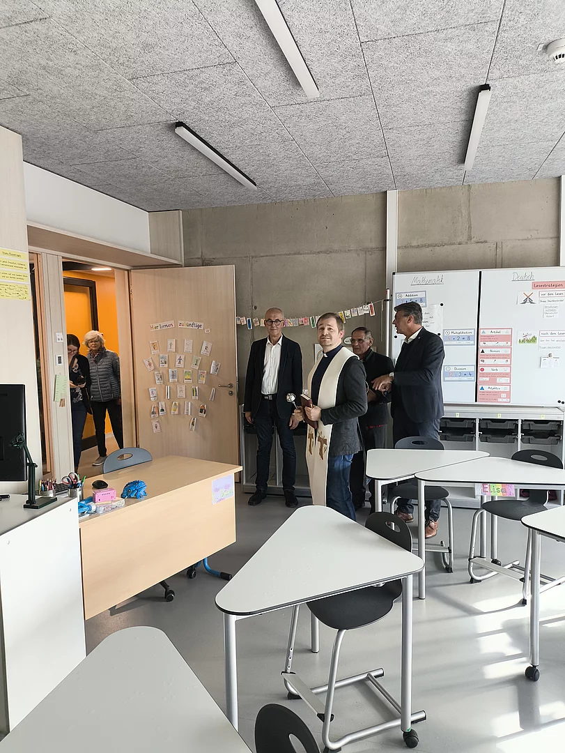 Nachdem die Kinder zur Eröffnung einen musikalischen Auftritt auf ihrem neuen Pausenhof zum Besten gaben, dankte Bürgermeister Hack allen am Bau beteiligten Personen. Vorneweg dem Architekten Frank Nickel, den Fachplanern und Baufirmen. Besonderer Dank galt auch den Bauhofmitarbeitern, Reinigungskräften, Lehrkräften und weiterem Betreuungspersonal. Die durchgeführten Baumaßnahmen während des laufenden Schulbetriebes waren für alle Beteiligten herausfordernd und konnten nur Dank der guten Zusammenarbeit gestemmt werden. Das Ergebnis kann sich daher mehr als sehen lassen, bestätigte auch stellv. Landrat Bruno Kellner als Folgeredner. Schulverbandsvorsitzender Jakobus Kötzner freut sich über die nun auch technisch hervorragend ausgestatteten Klassenzimmer am Schulstandort Pettstadt. Diese wurden beim anschließenden Rundgang durch das Schulgebäude begutachtet und mit Gottes Segen versehen. Zum Abschluss lud der Elternbeirat die Erwachsenen zu Kaffee & Kuchen und die Kinder zum Spielen ein.