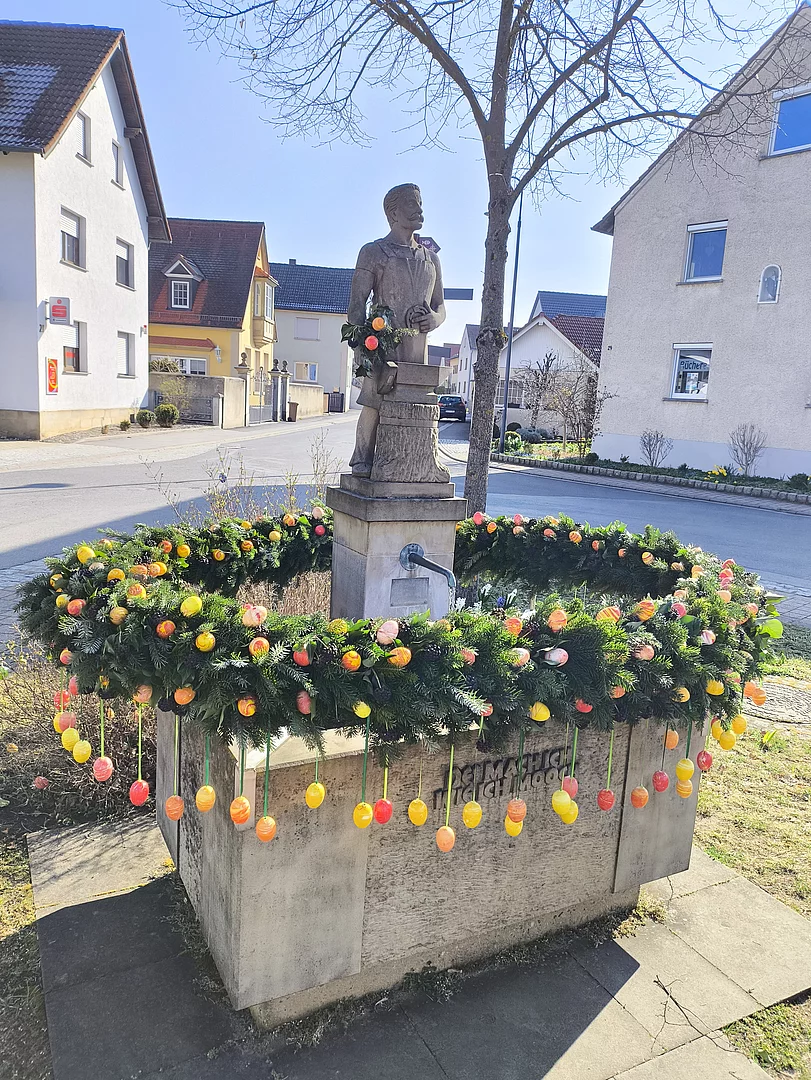 wünscht die Gemeinde Pettstadt und dankt wieder dem Obst- und Gartenbauverein Pettstadt für das Schmücken des Brunnens!